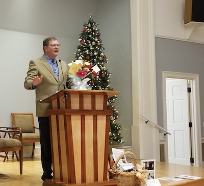Highlights were a French music box played by Philip Jamison, spirits chosen by Andiario’s vintner Eric Schraedley, ratatouille and salad by Trinity Caterers, bread from La Baguette Magique, coffee by Horn and Hardart, an impressive assortment of desserts by local pastry chef Kim Stack, and of course the many donated raffle and auction items including 4 raffled live by auctioneer Greg Erskine. Photos below thanks to Kelly Baker.