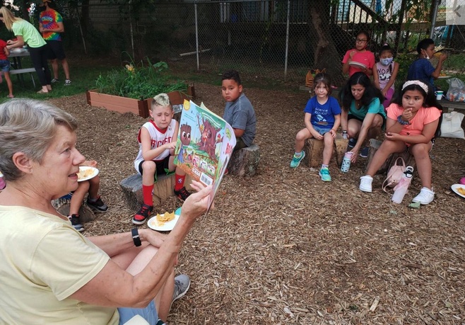 DLN reporter Bill Rettew was with us on July 19, at the weekly Mondays at Melton program presented jointly by the West Chester Green Team and the Melton Center. His photo shows Nora Ziegler reading a book on tomatoes to the children.