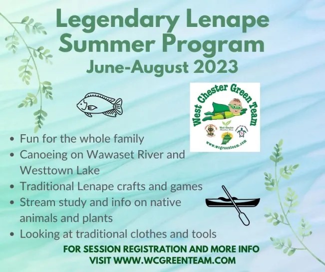 Thank you for your interest in the West Chester Green Team, the Legendary Lenape program, and nature! Here is the schedule of programs: