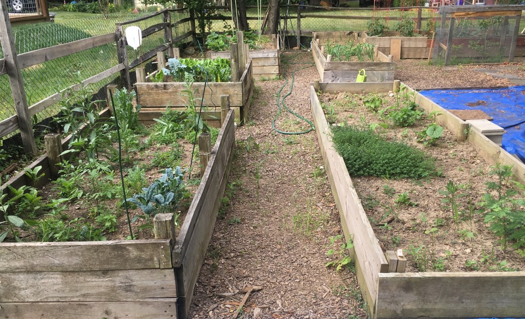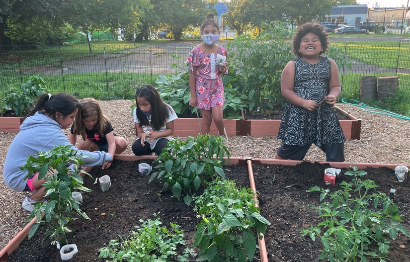 Community gardens are an important resource to bring children into an appreciation of the outdoors, the character-building practice of gardening, the value of healthy food, and the thrill of growing it oneself. To the left: one of our community gardens underway.