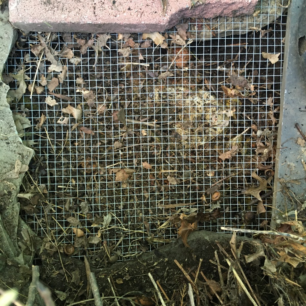 • There are no good shortcuts; compost and mulch, our friends, take time to produce. To the right: unusable organic matter from the kitchen returns rapidly and aerobically to nature, under a strong wire mesh bordered with stones to keep rodents from feasting.