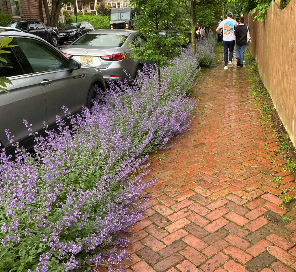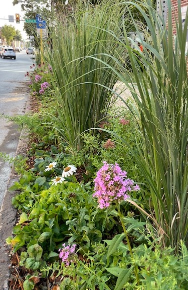 Some of those are Verge plantings, that is, in the strips between street and sidewalk, also known as hellstrips. To the right: planted strip on W. Chestnut St., outside the Chester County History Center. For an interview with the coordinator of several of those projects, see here.