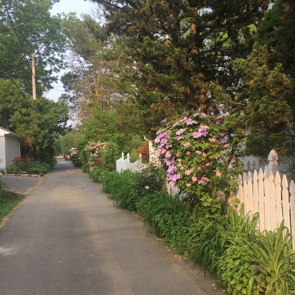 The “country lane” type of alley is more open, with low fences, few adjacent buildings, plentiful alleyside plantings, and attractive views into back yards.