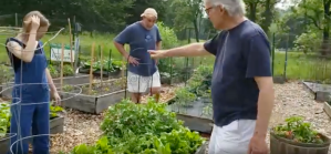 Click here to view the tour of Chris Pugliese‘s garden, which includes both veggies and flowers, with explanation of how the plantings have evolved over the years. The photo shows Chris describing his recently installed raised beds.